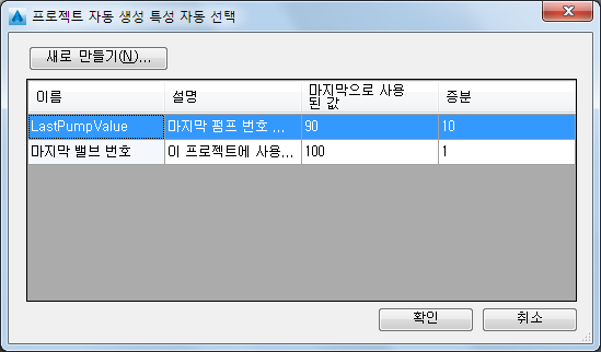 프로젝트 자동 생성 특성 선택 대화상자에서 새로 만들기를 클릭합니다.