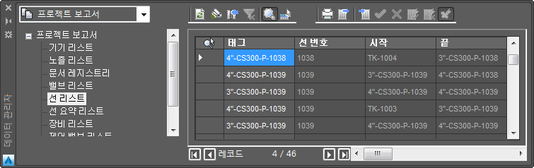 데이터 관리자를 사용하여 보고서를 작성하려는 경우 기존 보고서 템플릿을 기반으로 새 보고서 유형을 작성할 수 있습니다. 템플릿에는 장비 리스트, 선, 선 요약, 기기, 밸브, 노즐 등이 포함됩니다.