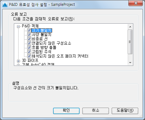 P&ID 프로젝트 도면의 유효성을 검사하려면