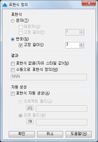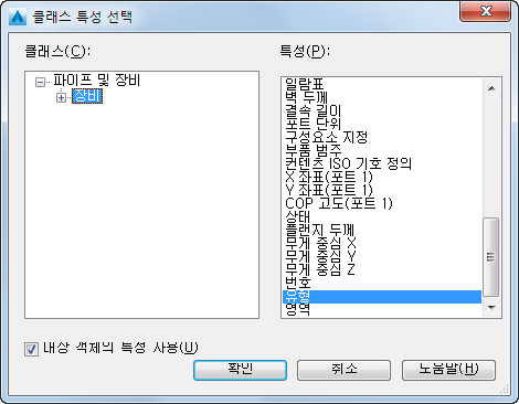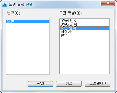 - 도면 특성 선택 대화상자에서 다음을 수행합니다.