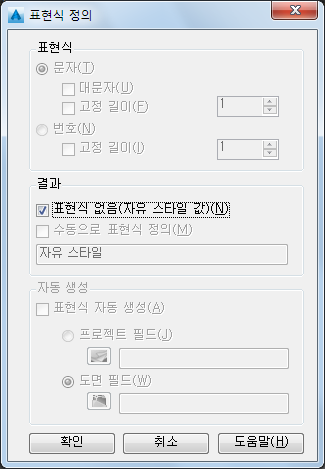 - 표현식 정의 대화상자의 결과 아래에서 표현식 없음(자유 스타일 값)을 클릭합니다. 확인을 클릭합니다.