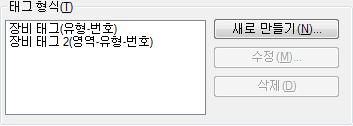 - 클래스 설정 창의 태그 형식 아래에서 새 태그 형식의 기준으로 사용할 태그 형식 유형(예: 장비 태그 [Type-Number])을 클릭합니다. 새로 만들기를 클릭합니다.