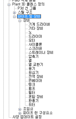- 프로젝트 설정 트리 뷰에서 Plant 3D DWG 설정을 확장합니다.