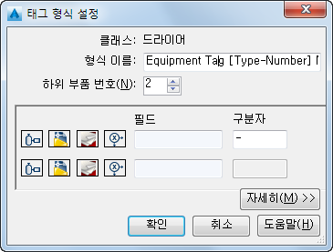 주: 파이프 선 그룹은 실제 도면요소는 아니지만 다른 구성요소와 마찬가지로 파이프 선 그룹에 대한 태그 형식을 설정할 수 있습니다.