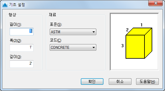 1. 리본에서 구조 탭 부품 패널 설정 메뉴 기초 설정을 클릭합니다.