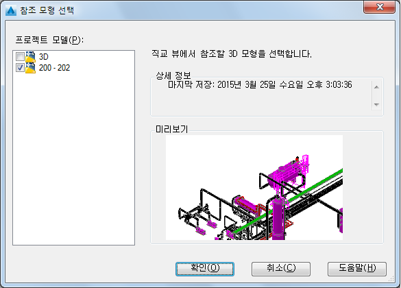 직교 도면의 기준으로 사용할 Plant 3D 모형을 선택합니다.