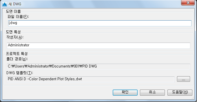 4. 새 DWG 대화상자에서 다음을 수행합니다.