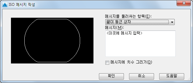 도면에서 메시지를 작성합니다. 메시지 문자, 엔클로저 및 치수기입을 설정합니다.