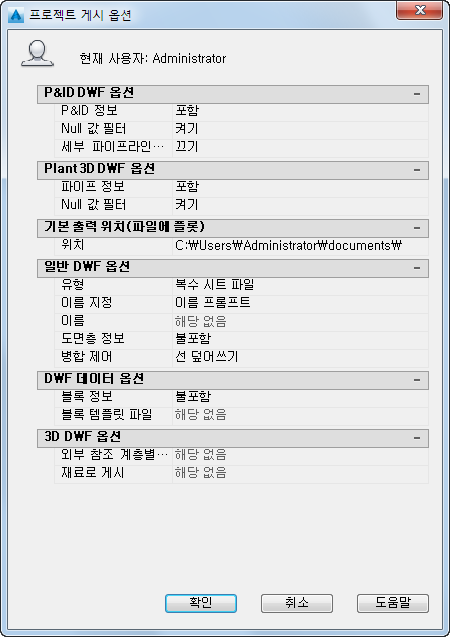게시된 DWF 파일 출력에 P&ID 관련 데이터를 포함할지 여부를 지정합니다.