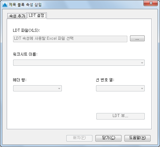 제목 블록 속성 삽입 대화상자에서 LDT 설정 탭을 클릭하고 다음을 수행합니다.