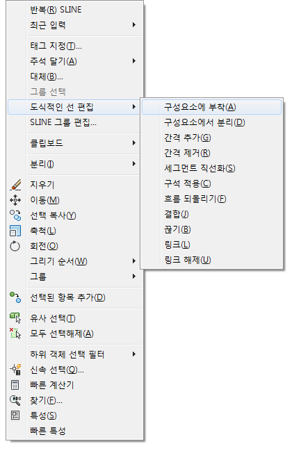 바로 가기 메뉴(마우스 오른쪽 버튼 클릭 또는 상황에 맞는 메뉴라고도 함)를 사용하여 선택한 구성요소 또는 선과 관련된 작업을 수행할 수 있습니다.