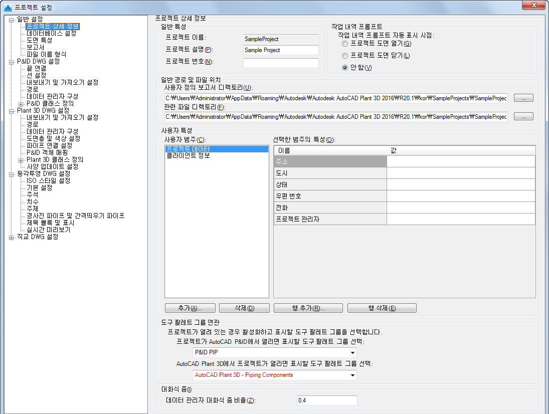 프로젝트 설정 트리 뷰에서 일반 설정을 확장합니다. 프로젝트 상세 정보를 클릭합니다.