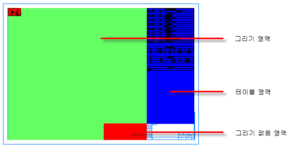제목 블록 설정에서 ISO 도면의 영역을 작성하고 수정할 수 있습니다. 그리기 영역은 ISO 객체가 작성되는 제한 영역을 지정합니다. 그리기 없음 영역을 그리기 영역 내에 배치하여 그리기 없음 영역 내에서 ISO 객체를 작성할 수 없도록 지정할 수 있습니다.