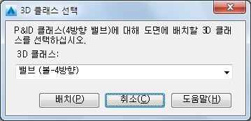 P&ID 클래스에 해당하는 Plant 3D 클래스를 선택하여 모형에 삽입합니다.