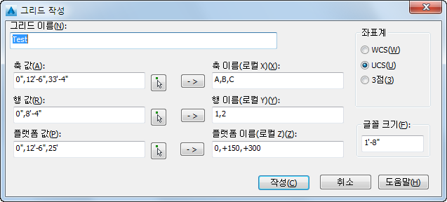 그리드 작성 대화상자의 그리드 이름 상자에 그리드 이름을 입력합니다.