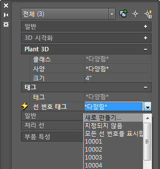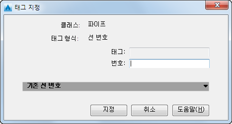 선택한 파이프가 연결되지 않은 경우에는 특성 팔레트에서 선 번호 태그 리스트를 설정할 수 없습니다.