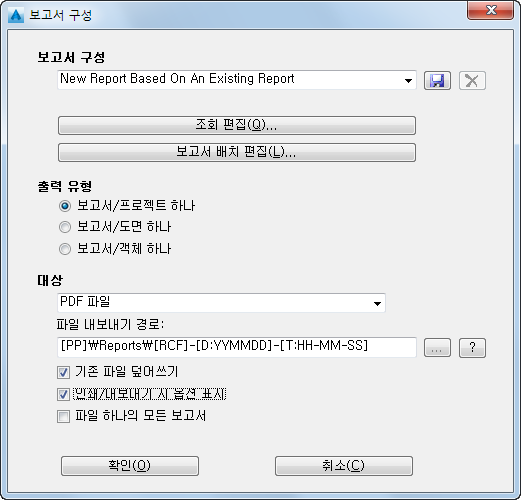 - 보고서 구성 대화상자의 보고서 구성 아래에서 다음을 수행합니다.