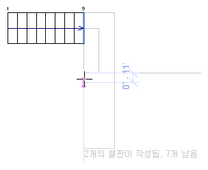 - 커서를 이동하여 계단진행을 그린 다음, 클릭하여 계단진행의 끝과 총 개수 또는 챌판을 지정합니다.