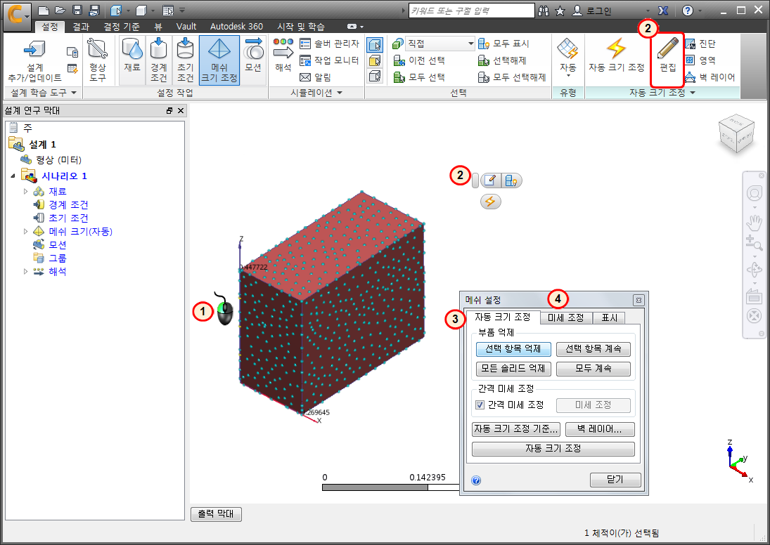 모형에서 메쉬 분포를 수정하려면