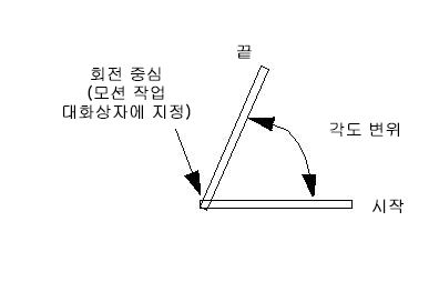 각도는 동작 작업 대화상자에 규정된 초기 위치를 기준으로 합니다.