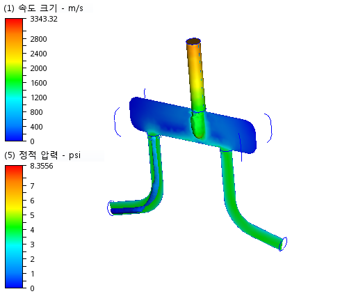 주: 등가 수량은 등위면의 쉐이프를 결정하는 스칼라 결과입니다. 결과 수량별 색상에 따라 색상이 결정됩니다. 기본적으로 색상은 동일합니다. 두 결과를 함께 표시하려면 다른 스칼라 결과를 선택합니다. 예로는 등가 수량으로 나타낸 온도와 결과별 색상으로 나타낸 속도 크기가 있습니다. 이렇게 하면 모형에서 동일한 속도 크기를 갖는 모든 위치의 온도가 표시됩니다.