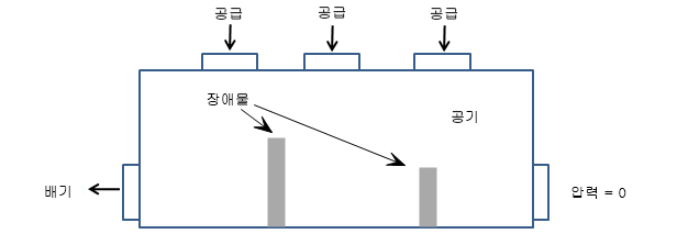 - 출구: 모든 출구(반환, 배기 또는 개구부)에 정적 게이지 압력 = 0을 지정합니다.