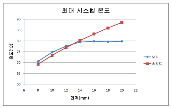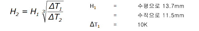 다른 온도 차이에서의 임계 간격 계산