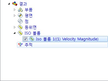 ISO 볼륨은 지정된 결과 수량 값 범위에 속하는 모형의 체적입니다. 지정된 단일 값을 가지는 모형의 모든 위치에 표시되는 등위면과 달리, ISO 볼륨은 해당 결과 값 범위에 속하는 모든 위치에 표시됩니다.