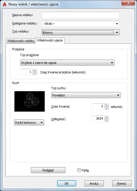 Definiuje przejście i ruch używany dla widoku podczas odtwarzania za pomocą interfejsu ShowMotion.