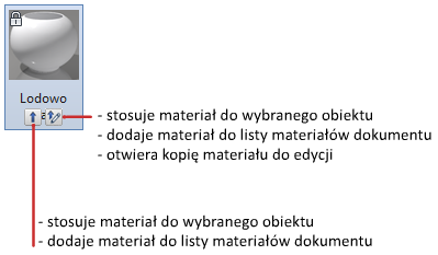 Aby edytować ustawienia właściwości materiału, kliknij dwukrotnie próbkę materiału, lub kliknij prawym przyciskiem myszy próbkę materiału i kliknij opcję Edytuj.