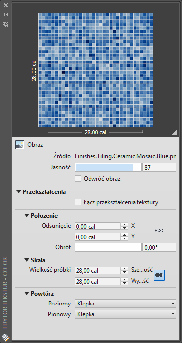 Umożliwia edycję właściwości obrazu lub tekstur proceduralnych.