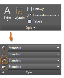 Własne style wielolinii odniesienia można utworzyć za pomocą listy rozwijanej w rozwiniętym panelu Opis lub wprowadzając WIELOLODNSTYL w oknie poleceń.