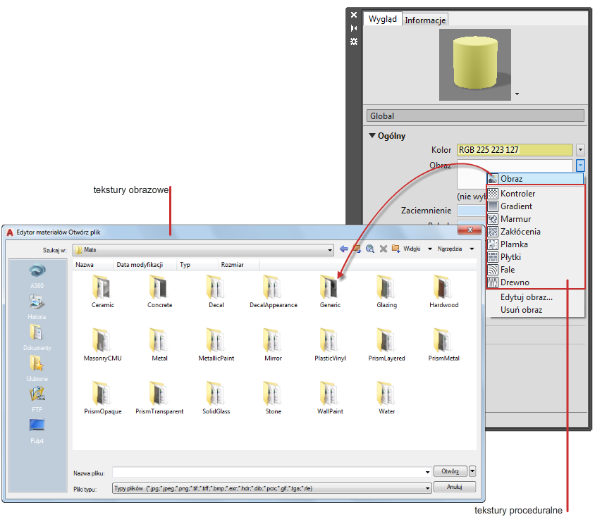 Istnieją dwa typy tekstur: tekstury obrazowe i proceduralne.