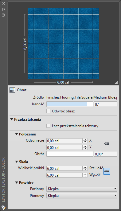 Ustawienie Wygląd jest dostępne tylko dla tekstur proceduralnych.