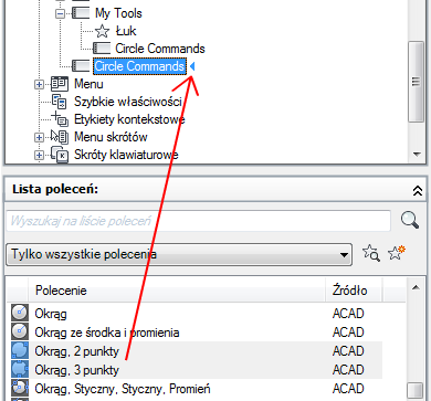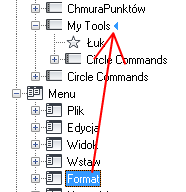 Zostanie utworzony nowy pasek narzędzi (o nazwie Paseknarzędzi1), a nowy przycisk rozwijany odwołujący się niego zostanie umieszczony na dole wybranego paska narzędzi.