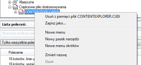 Zostaną wyświetlone wszystkie częściowe pliki CUIx wczytane w głównym pliku CUIx.