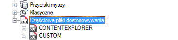 Częściowe pliki CUIx wczytane do głównego pliku CUIx są wymienione na liście w węźle Częściowe pliki ustawień.