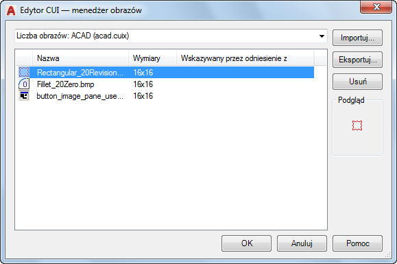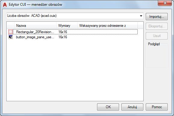 Obrazy niestandardowe dla poleceń można importować i eksportować.