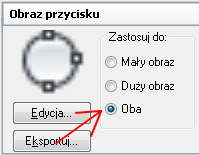 W panelu Obraz przycisku, w obszarze Zastosuj do wybierz jedną z trzech opcji przypisania: Mały obraz, Duży obraz lub Obydwa.