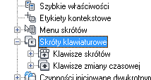 - Na karcie Dostosuj, w panelu Dostosowywane pliki: <nazwa pliku> kliknij znak plus (+) obok węzła Skróty klawiaturowe, aby go rozwinąć.