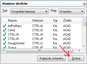 - W panelu Skróty wybierz typ i stan skrótów klawiaturowych, które mają zostać wydrukowane.