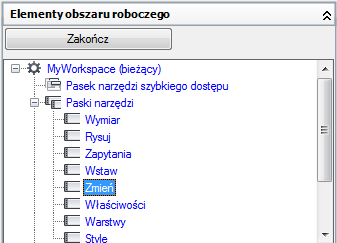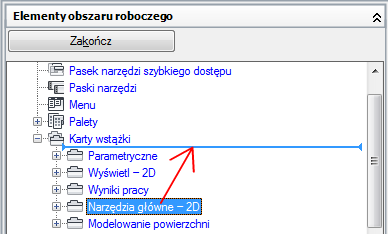 - Na panelu Zawartość obszaru roboczego kliknij węzeł drzewa Pasek narzędzi szybkiego dostępu.