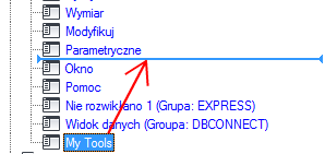 - W polu Grupa palet narzędzi wybierz jedną z dostępnych grup palet narzędzi, aby powiązać ją z kartą wstążki.