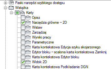 - W panelu Zawartość obszaru roboczego kliknij znak plus (+) obok węzła Karty wstążki, aby go rozwinąć.