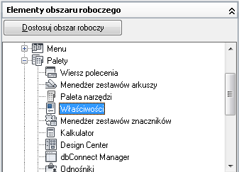 3. Na panelu Zawartość obszaru roboczego kliknij znak plusa (+) obok węzła Palety, aby go rozwinąć.