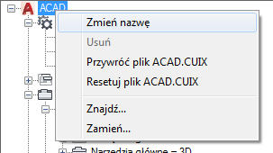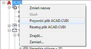 Uwaga: Resetować można tylko pliki CUIx znajdujące się w folderze UserDataCache w lokalizacji instalacji programu.