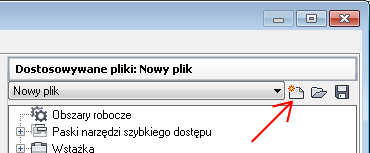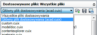 Wszystkie nowe polecenia są bezpośrednio dodawane do roboczego pliku CUIx. Jeśli plik CUIx, który zostanie użyty, nie został wczytany, na liście rozwijanej Pliki dostosowywania kliknij przycisk Otwórz. Następnie wybierz plik CUIx, który chcesz używać.