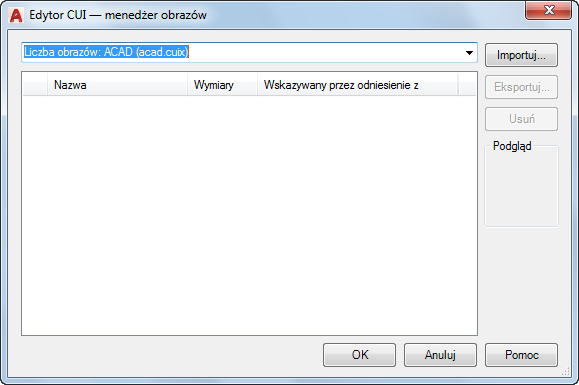 Powoduje całkowite usunięcie wybranego obrazu z listy obrazów niestandardowych oraz z pliku dostosowywania.
