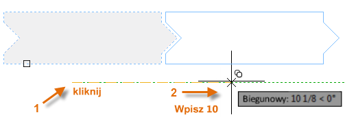 Następnie przesuń kursor w prawo na podstawie kąta śledzenia biegunowego, aby zachować kierunek poziomy, a następnie wprowadź wartość 10 dla odległości. Ponownie naciśnij klawisz Enter lub spację, aby zakończyć polecenie.