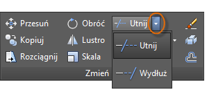 Popularnym sposobem jest użycie polecenia ODSUŃ w połączeniu z poleceniami UTNIJ i WYDŁUŻ. W oknie polecenia można wprowadzić TR zamiast polecenia UTNIJ lub EX zamiast polecenia WYDŁUŻ. Przycinanie i wydłużanie to jedne z najczęściej używanych operacji.